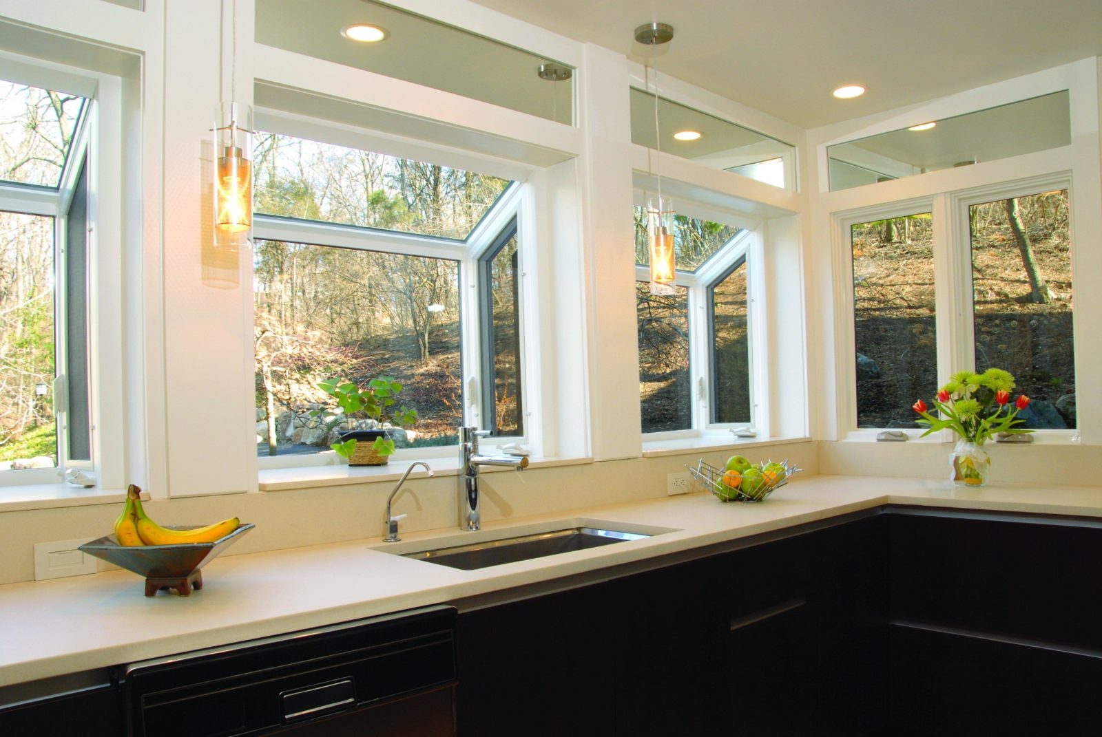 The Window Design Group Bay, Bow and Garden windows make a beautiful addition to the interior and exterior of homes. Expanding interior space with their unique three-dimensional design, Bay, Bow and Garden Windows allow additional natural light transmittance within rooms, creating a more open and inviting living space. The Window Design Group Bay, Bow and Garden vinyl windows are the perfect addition to most kitchens, living and dining rooms, and are typically installed on ground levels. Gain kitchen or shelf space without sacrificing the beauty of your home.